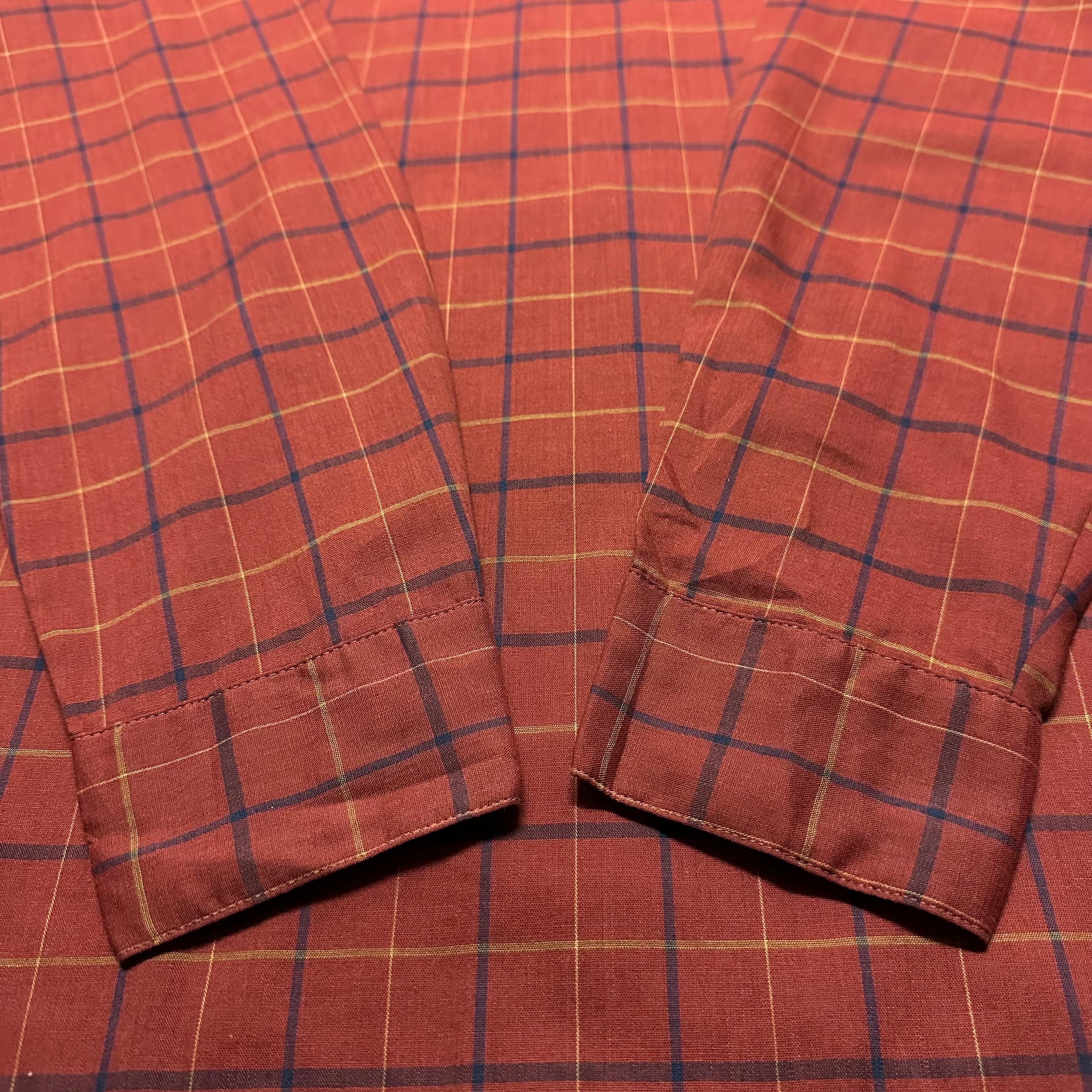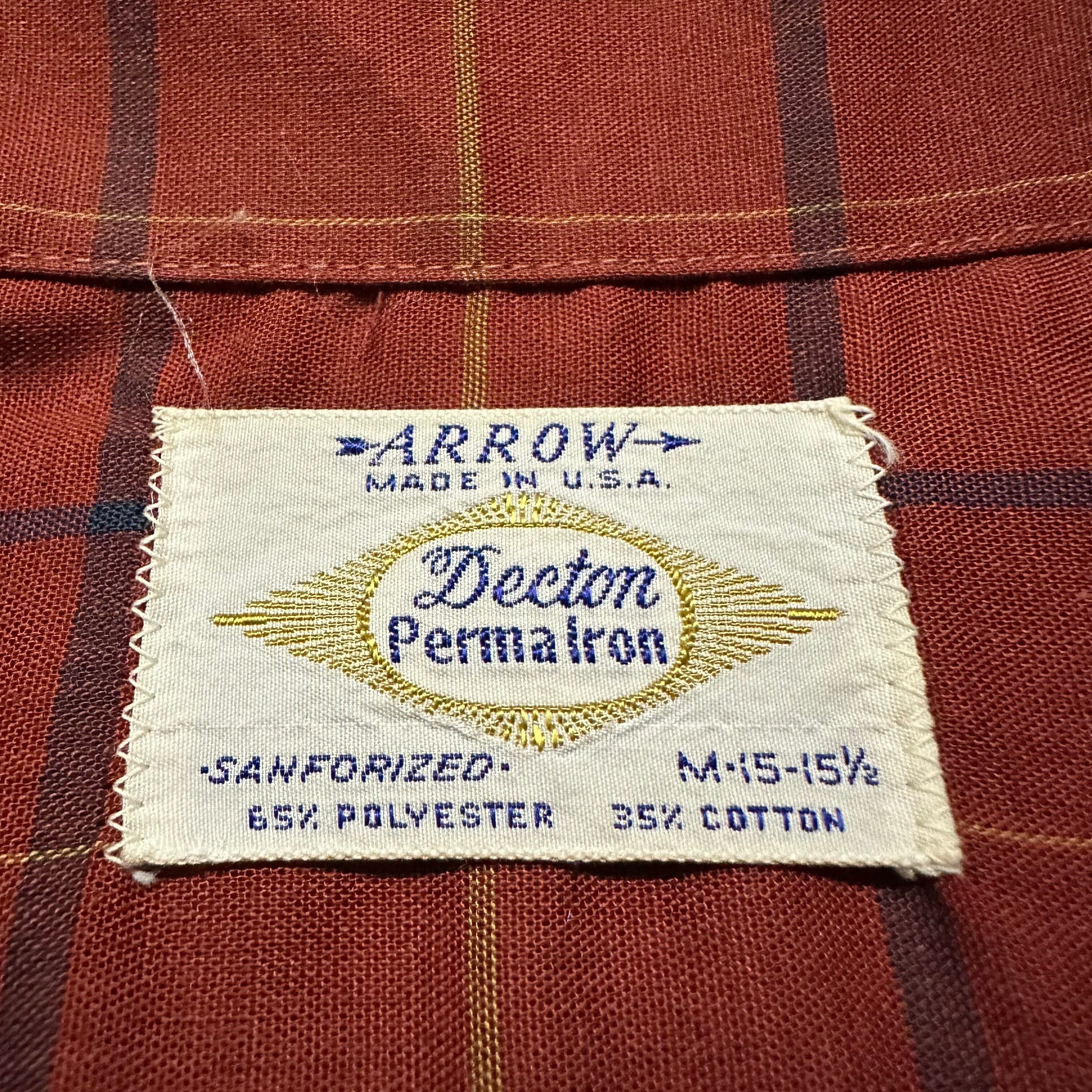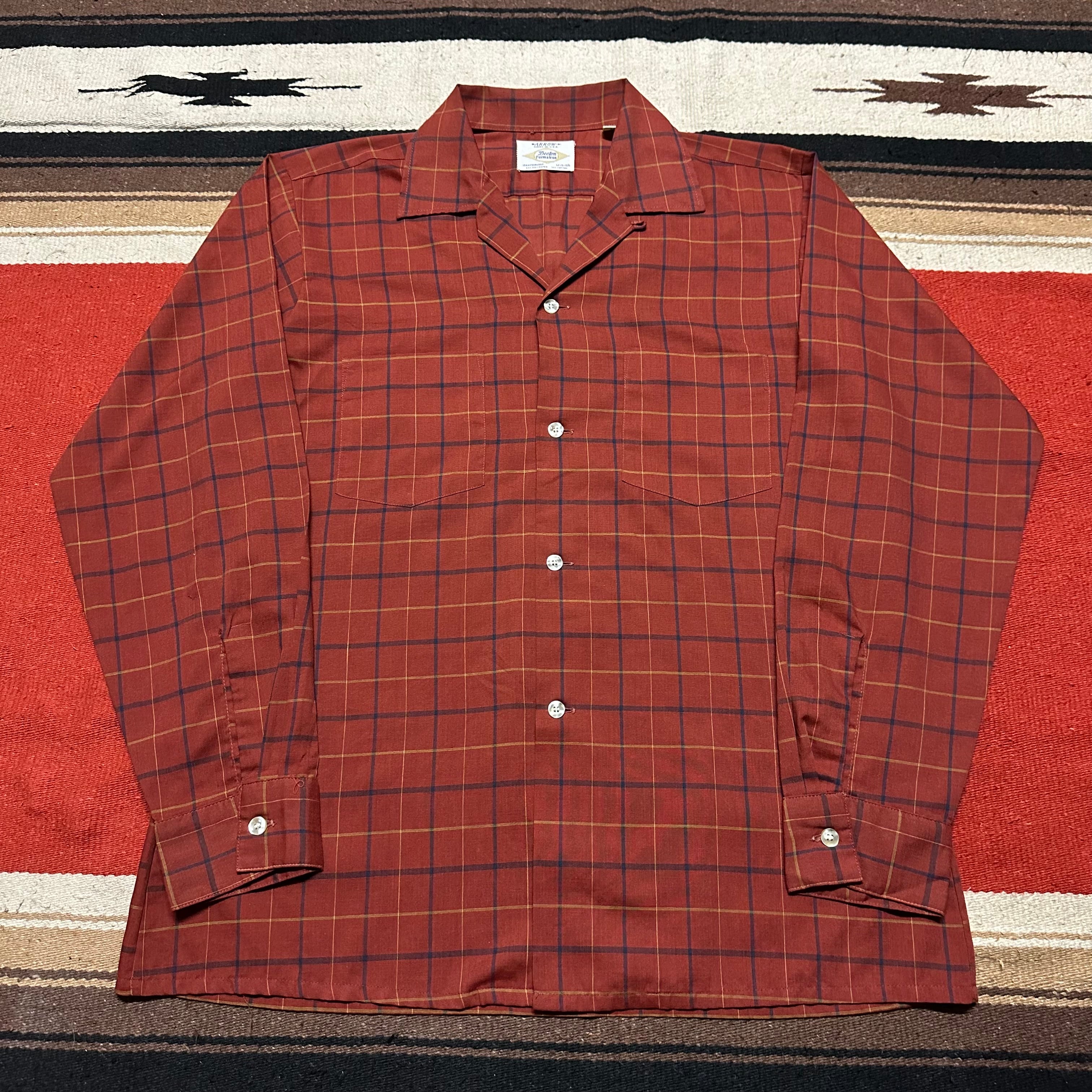 60s~ USA製 ARROW "Open Collar" Check Pattern Long Sleeve Polyester Shirts size M