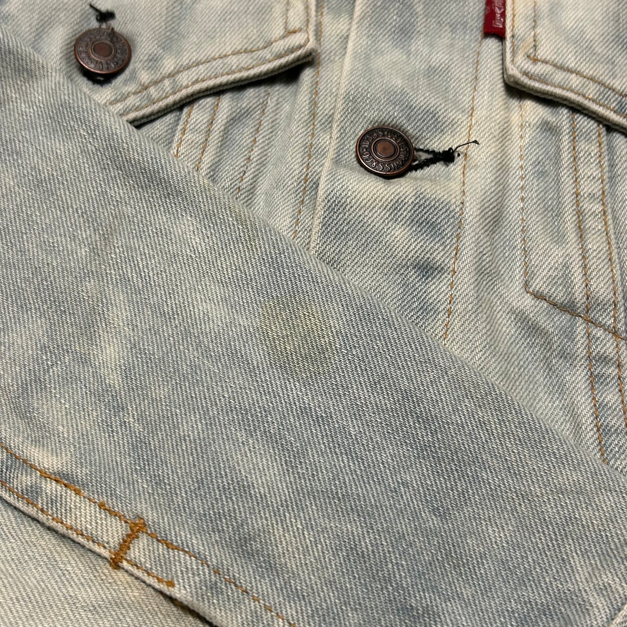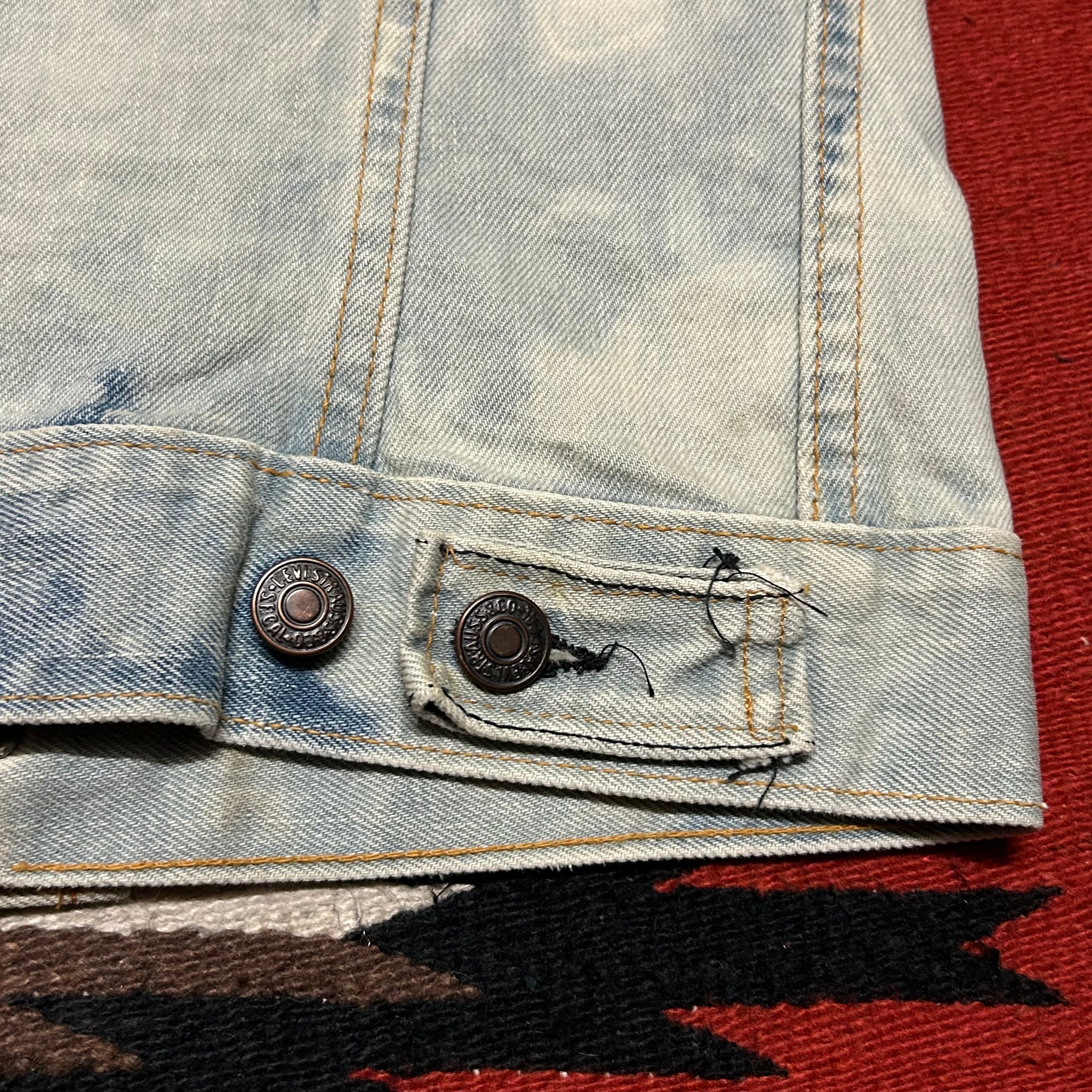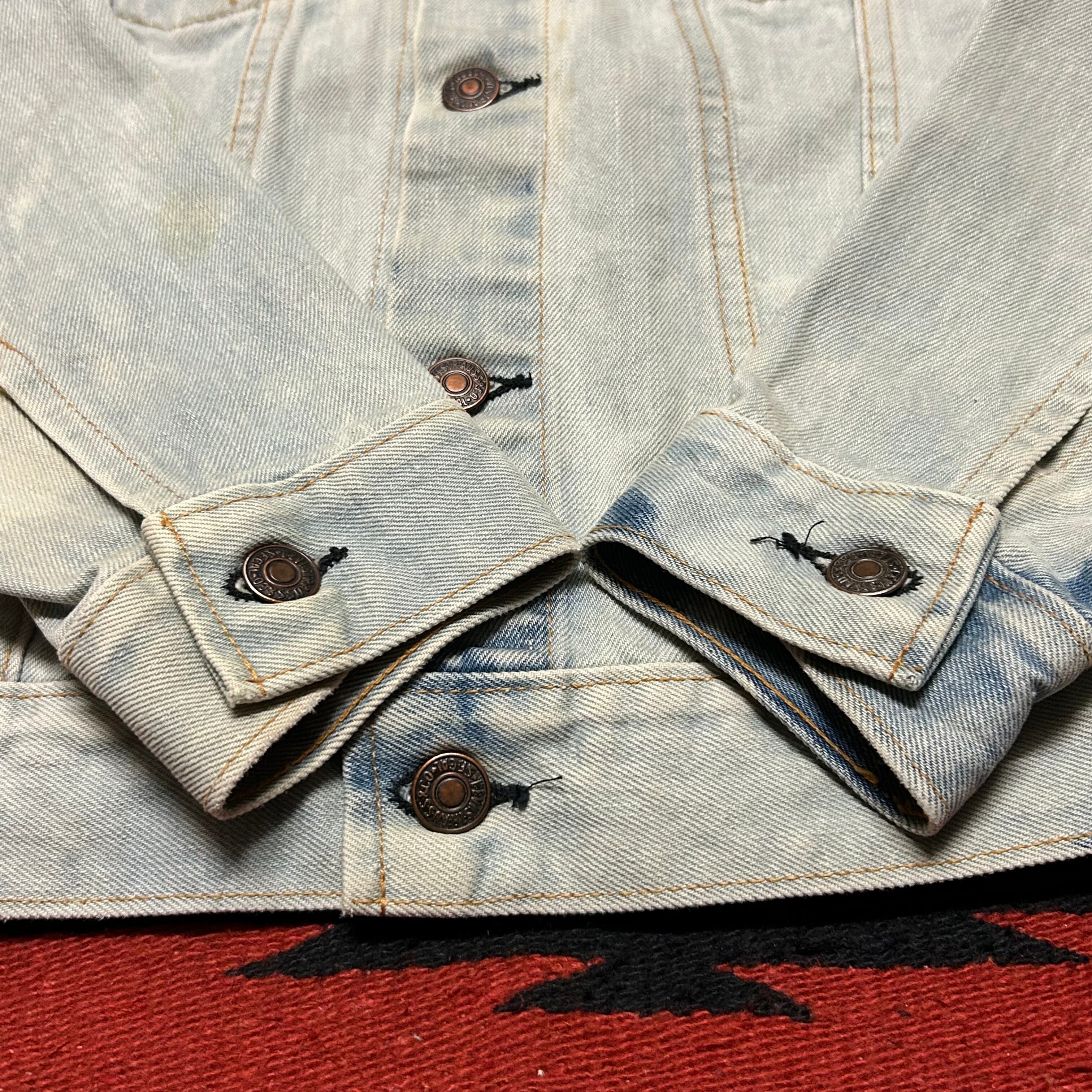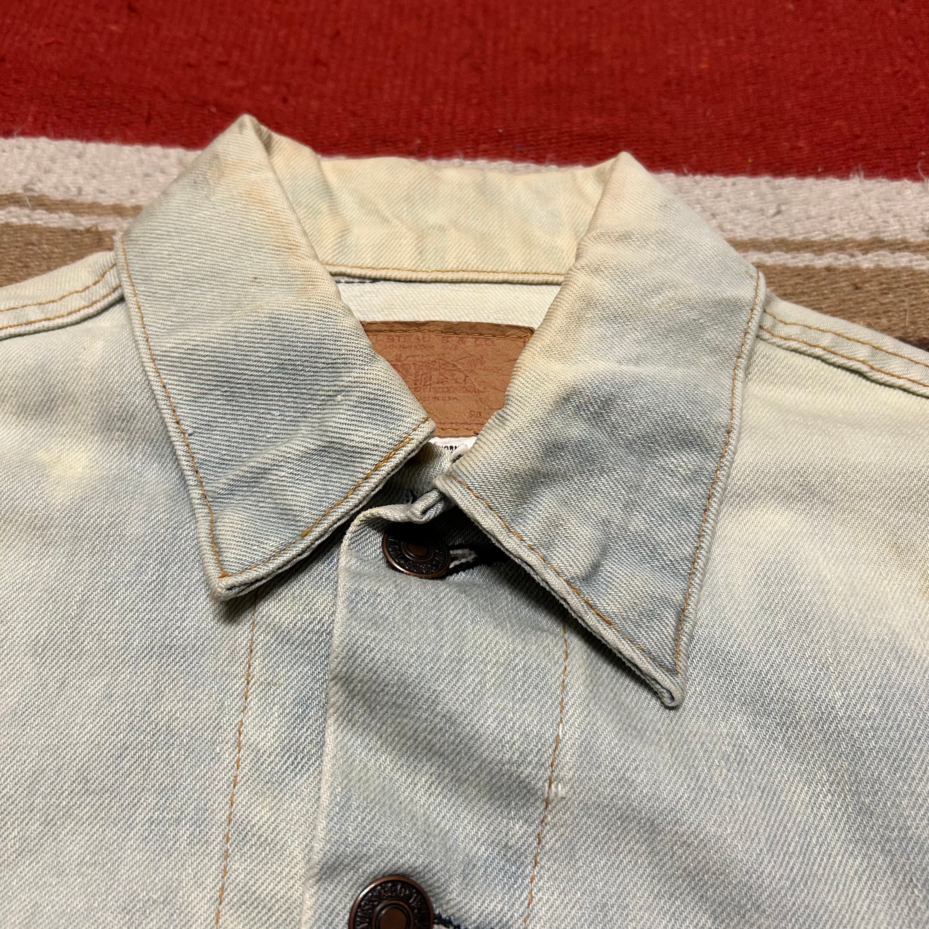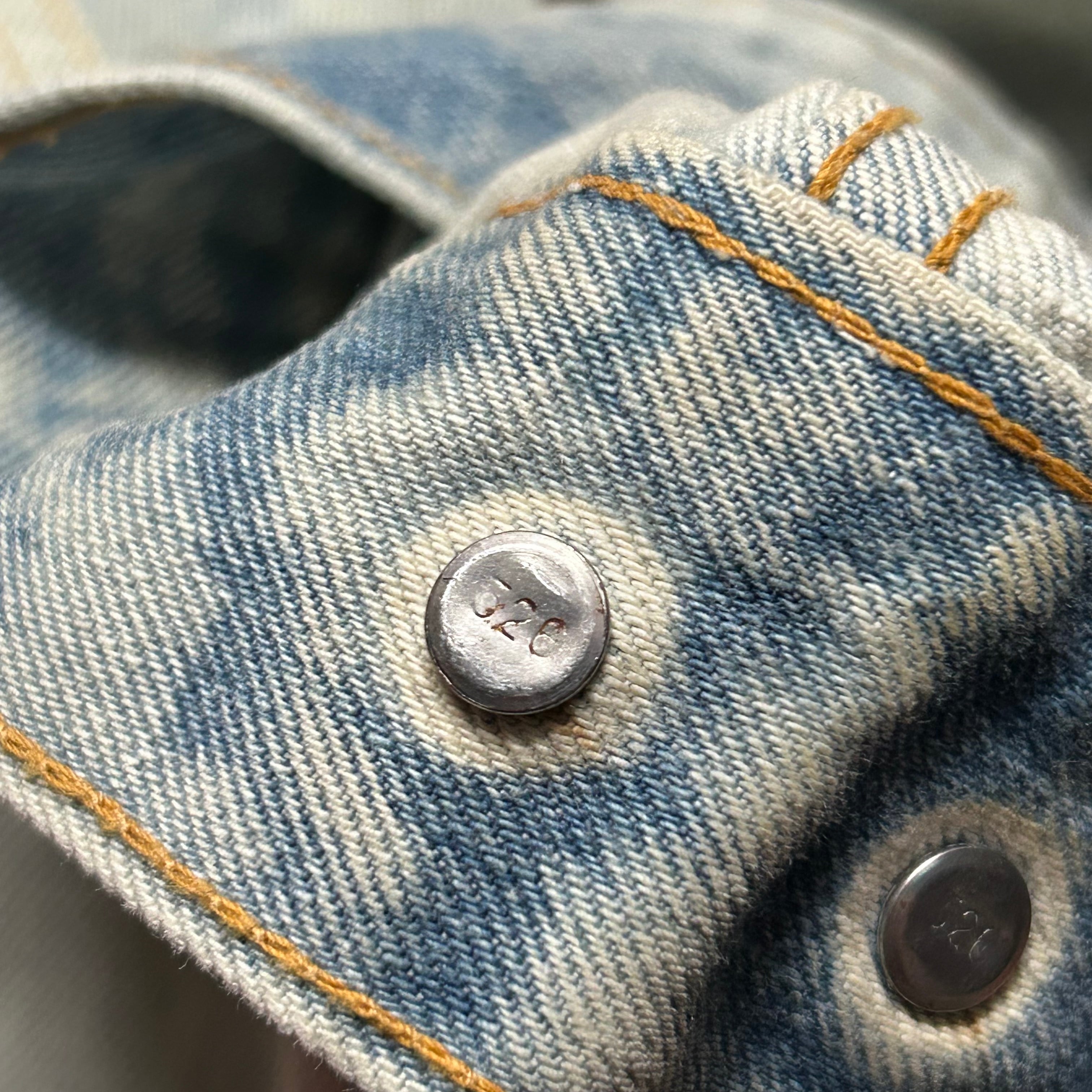 ★ブリーチされており、白っぽい色味に所々インディゴが残る雰囲気のある1着