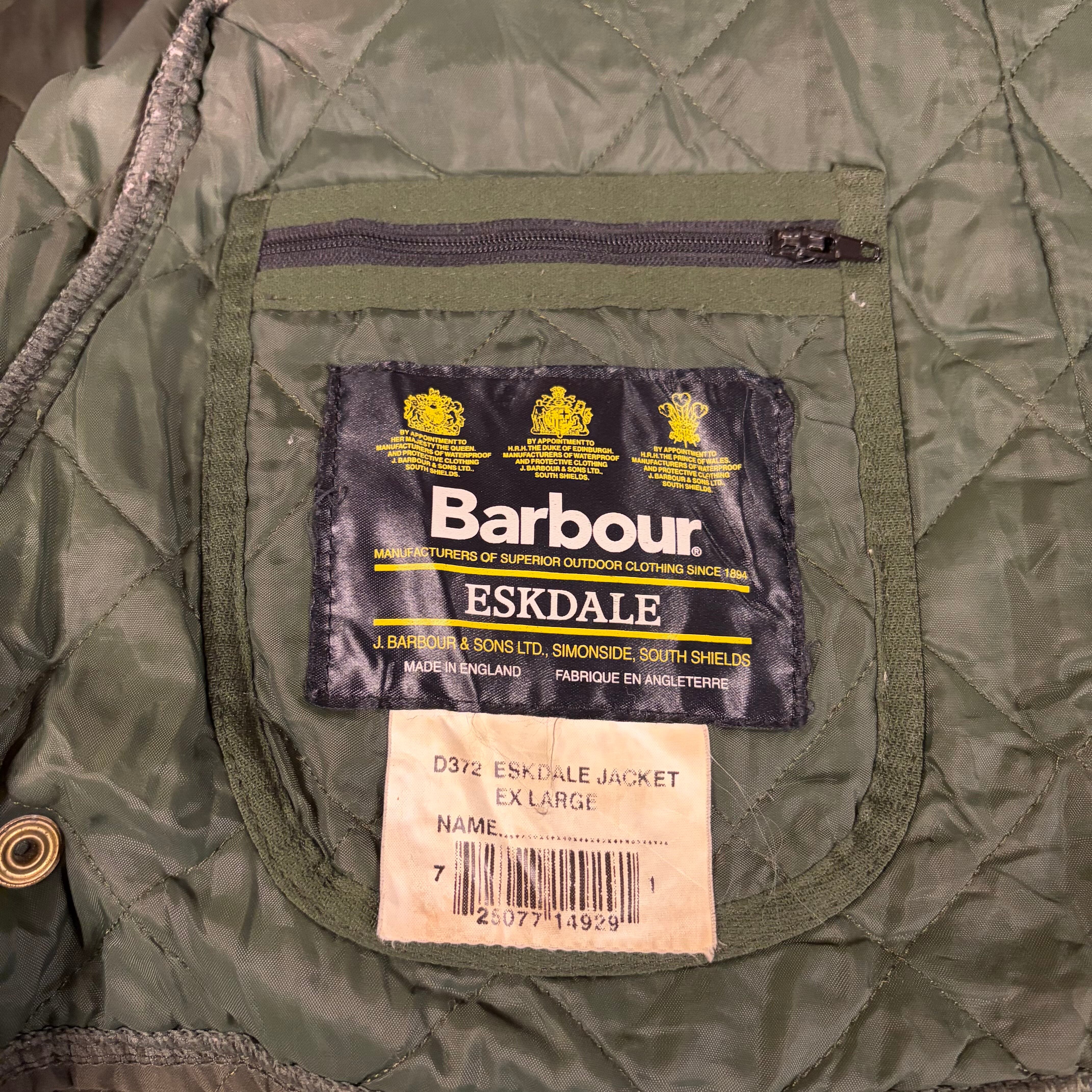 90's〜 Barbour ESKDALE Quilting Jacket ENGLAND MADE SIZE:XL