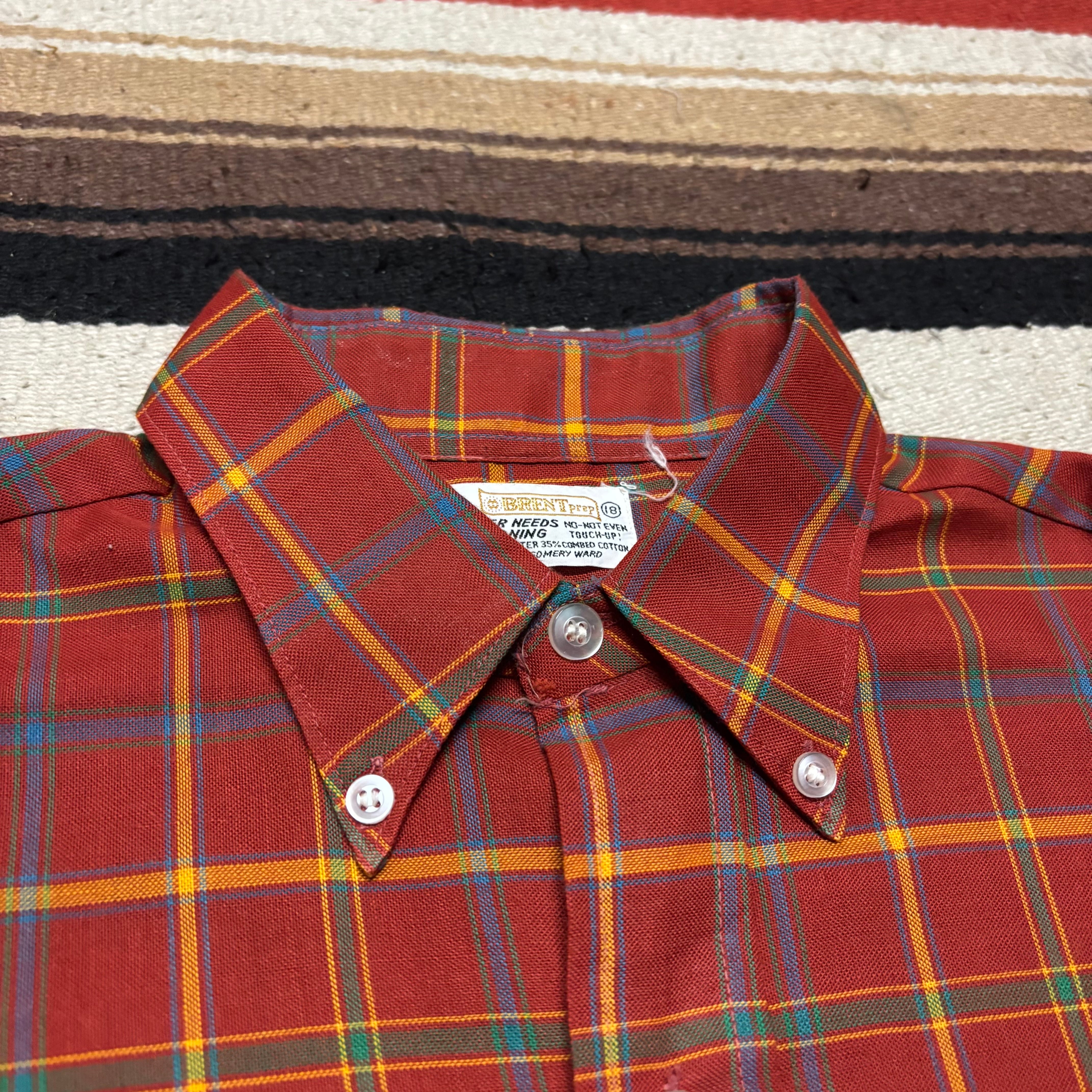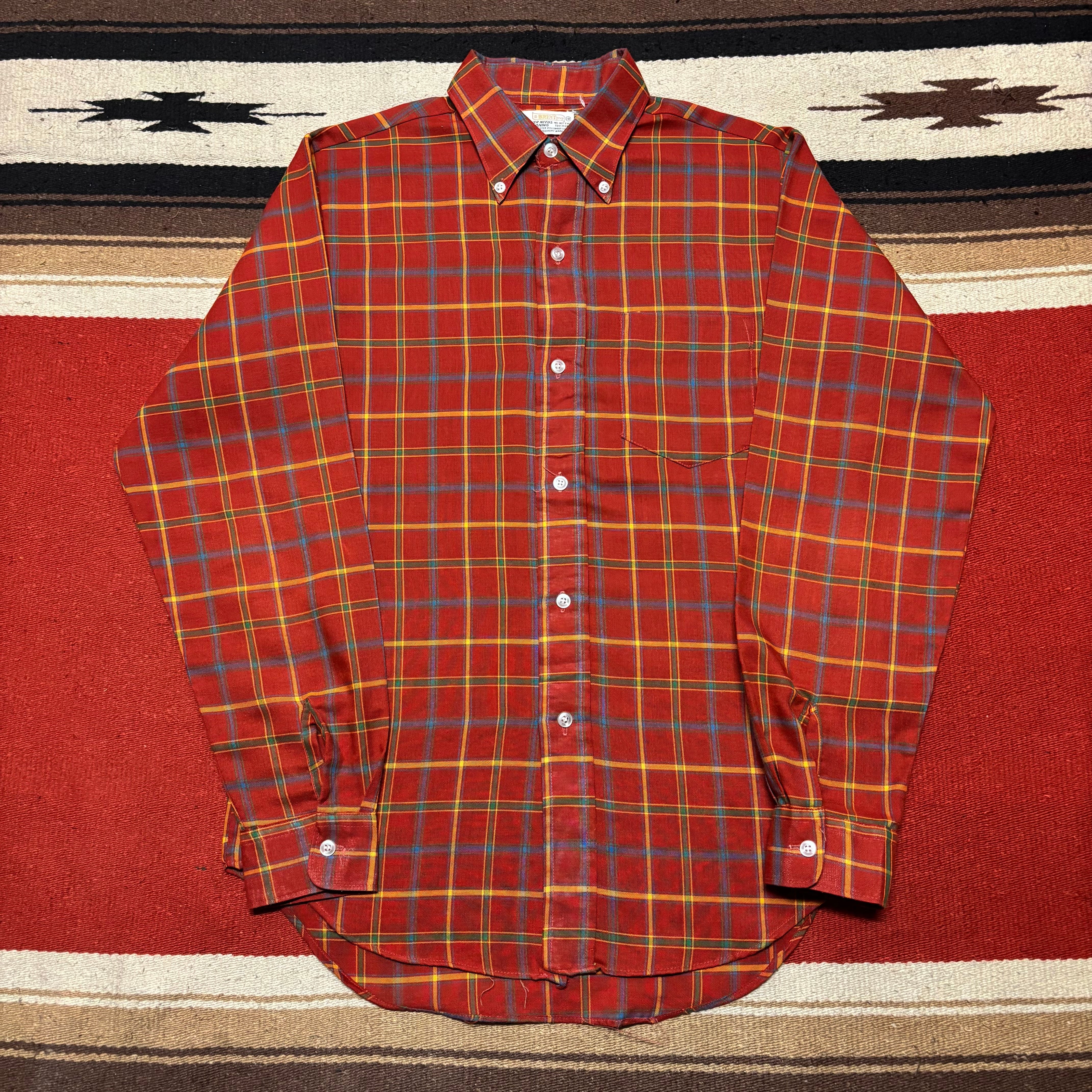 60s~ BRENT Button Down Polyester Long Sleeve Shirt
