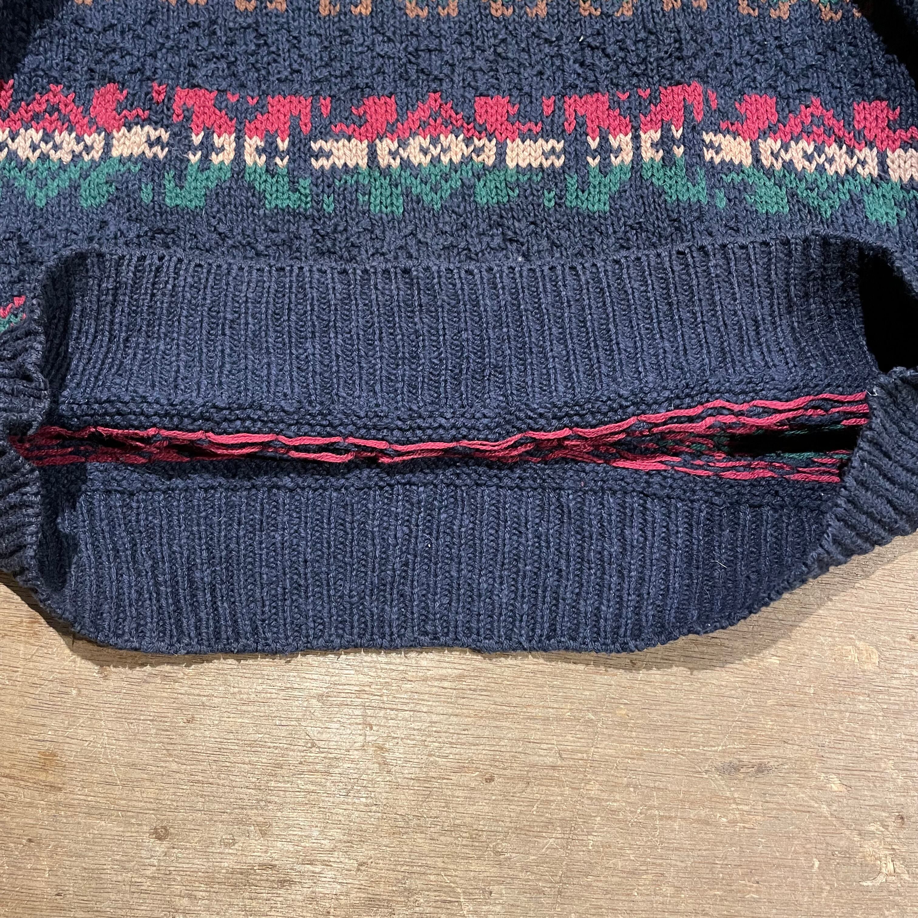 〜80's L.L.Bean All Over Pattern Cotton Knit Size M