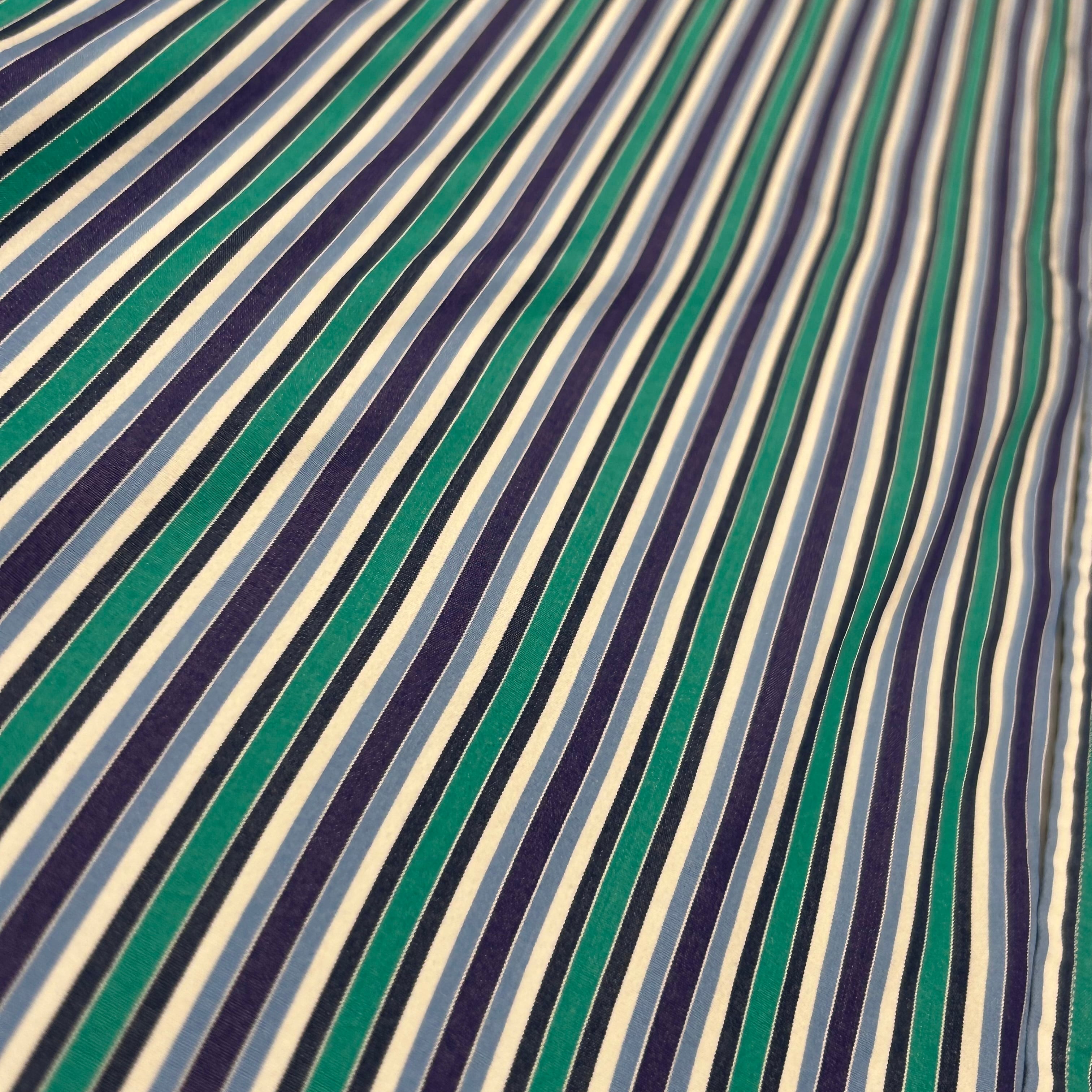 ★規則正しいストライプのパターンに大ぶりな台襟がファッショナブルなアイテムに昇華されています