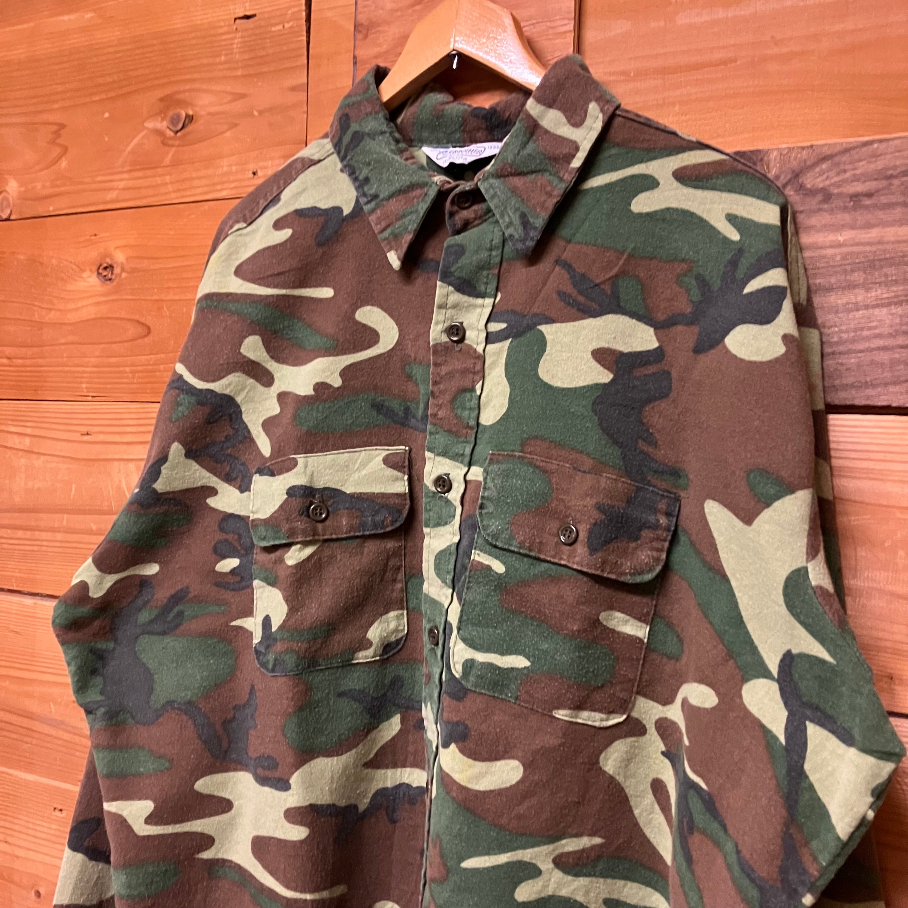 80's FIVE BROTHER Woodland Camo Print Flannel Shirt